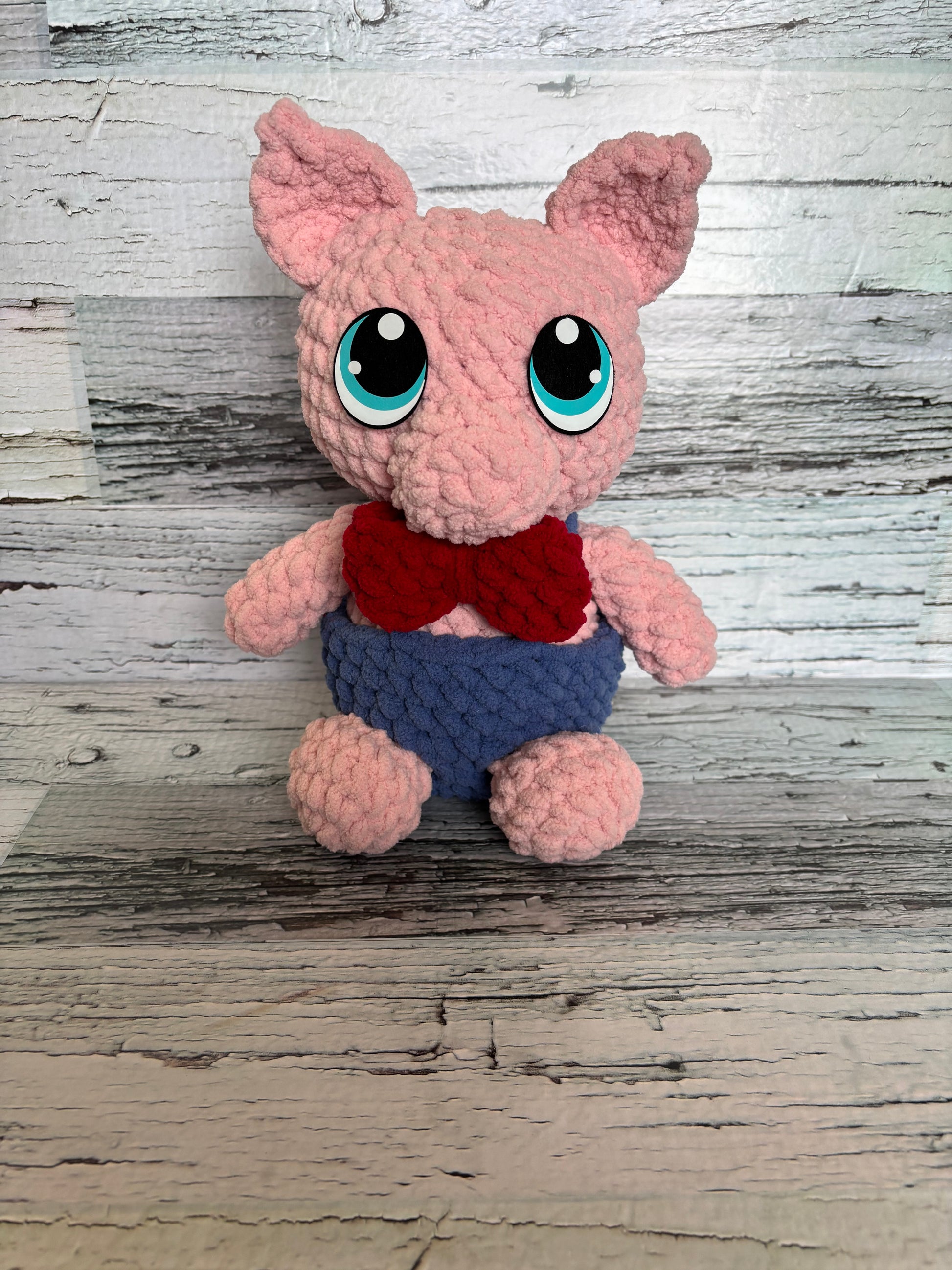 Dress up the fun with Piggy Pals Crochet Plushie – the huggable piggy that’s ready for every occasion! Handmade with buttery-soft chenille yarn, this adorable pink pig features oversized expressive felt eyes and including a stylish bowtie outfit and an adorable dress with matching headband. Piggy Pals is packed with charm, personality, and versatility.